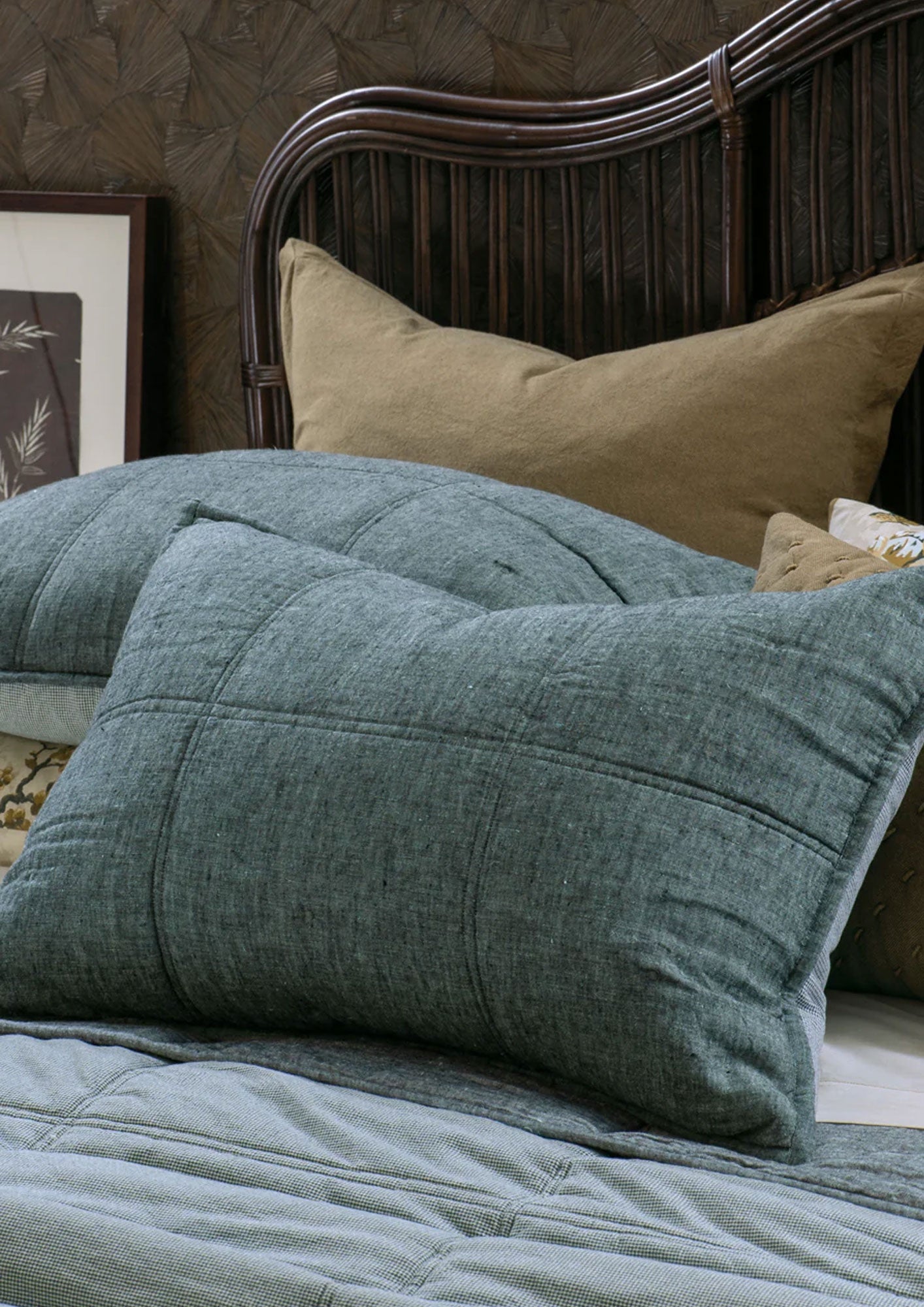 Athena Handblock Pillowcase Pair | Blue/Natural