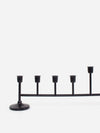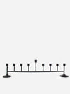 Crafted from durable cast iron with a sophisticated black finish, it features an elegant linear silhouette designed to hold up to nine candles. Its timeless design enhances the charm of your favorite candles.