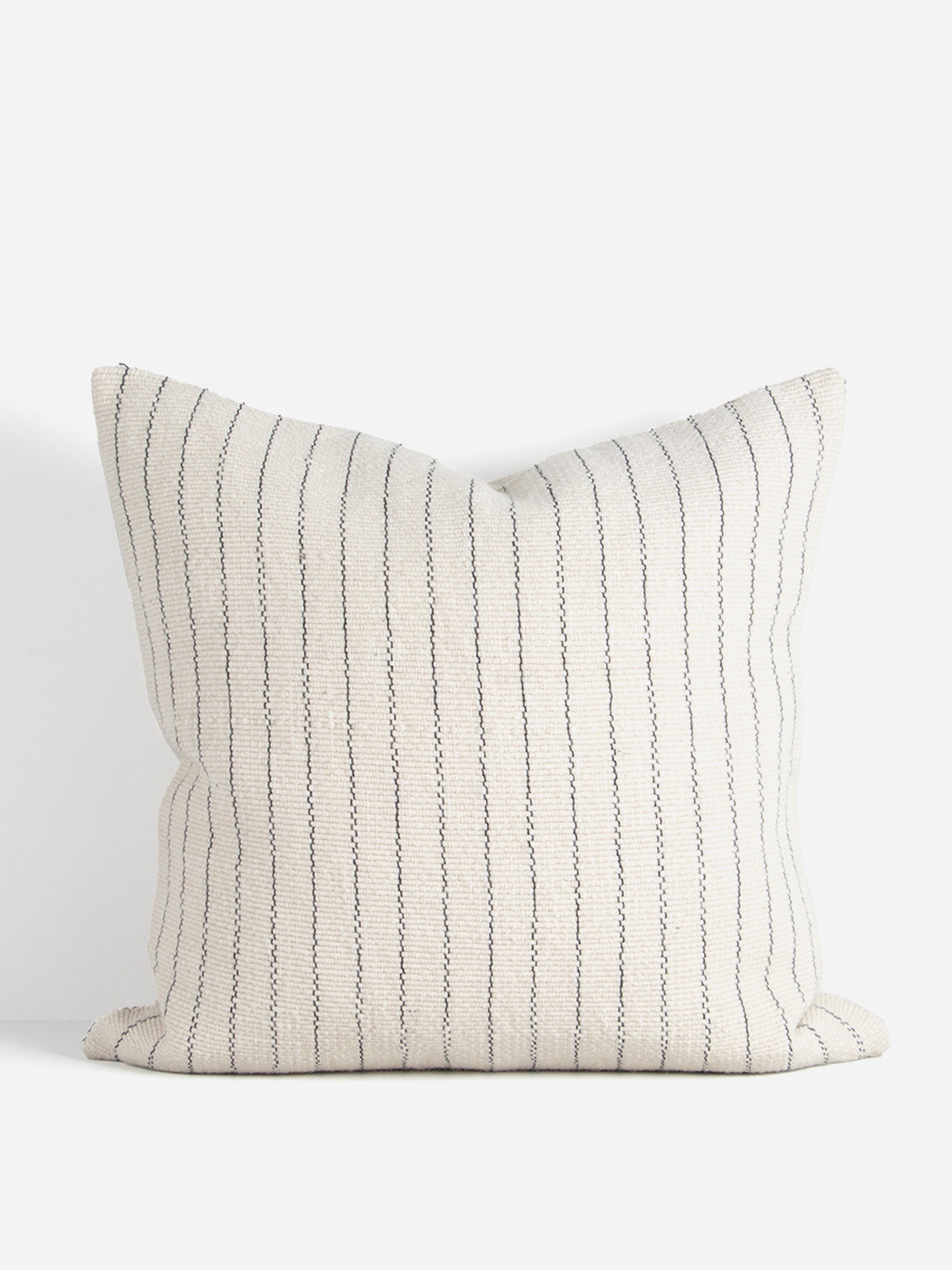 Celebrating the beauty of artisanal woven fabric, Hokkaido is an exquisite textural piece crafted in a neutral tone with a delicate linear design in navy blue. Handwoven from a blend of wool and cotton, the tactile surface creates a cosy and inviting aesthetic.
