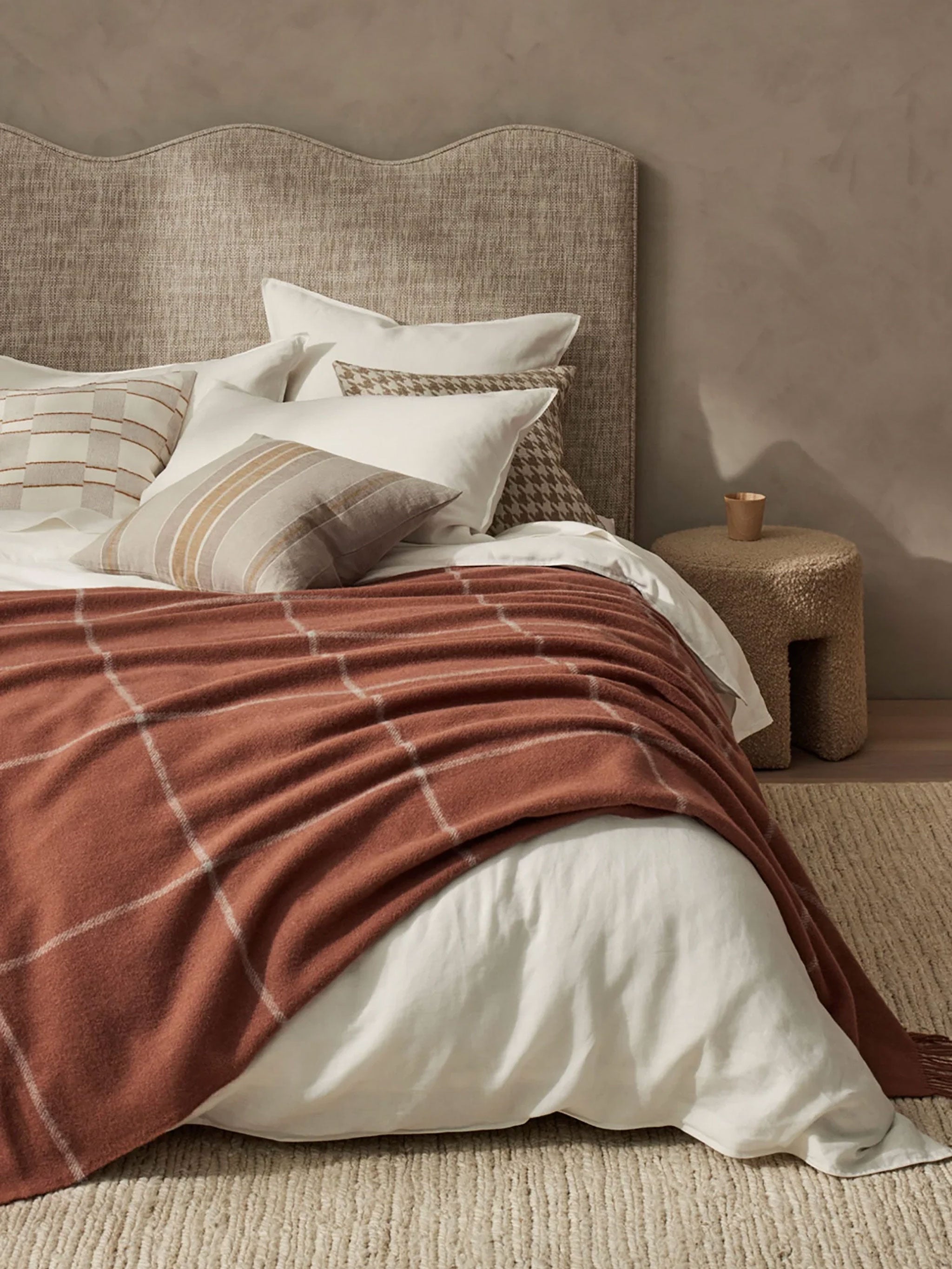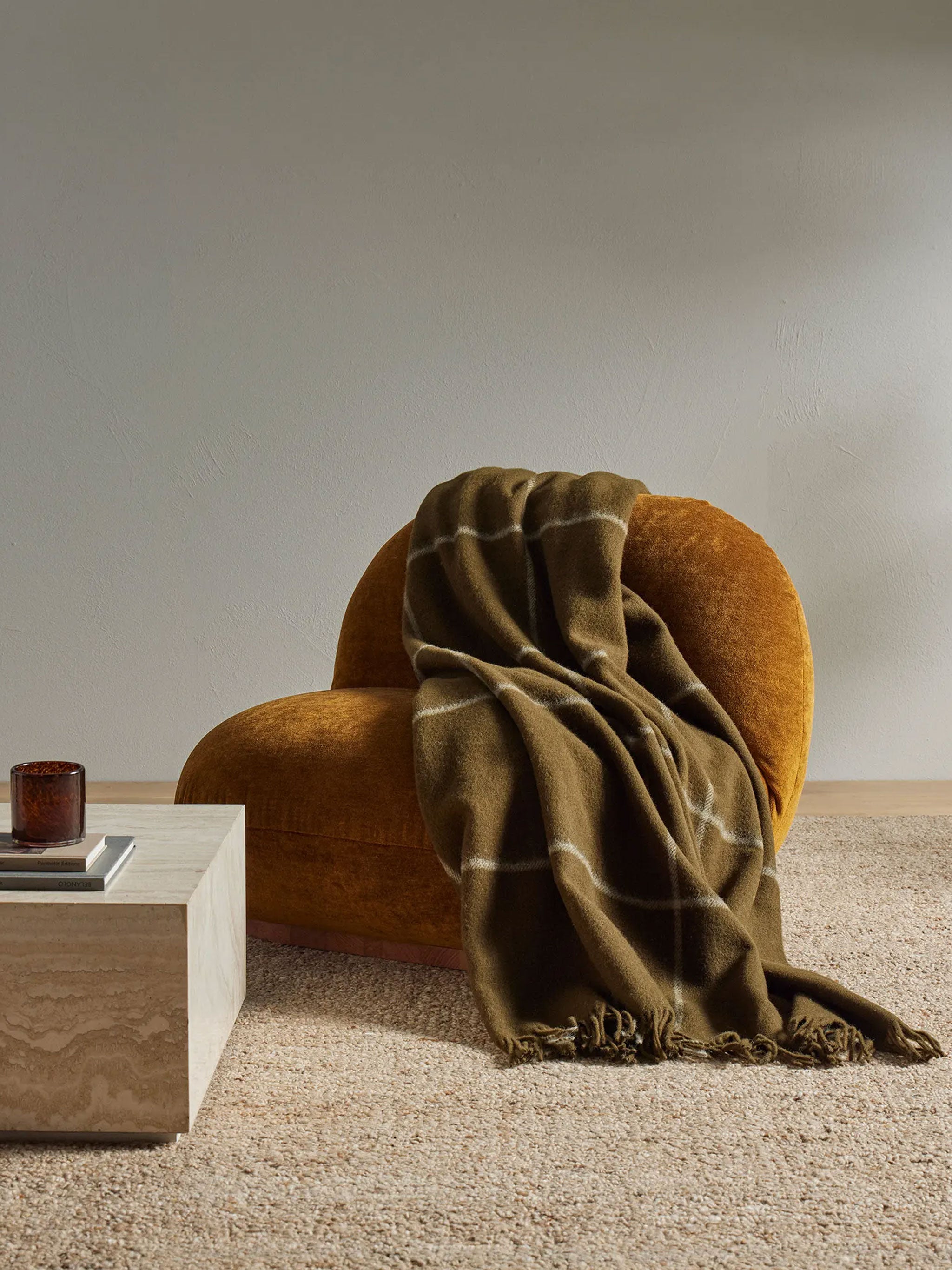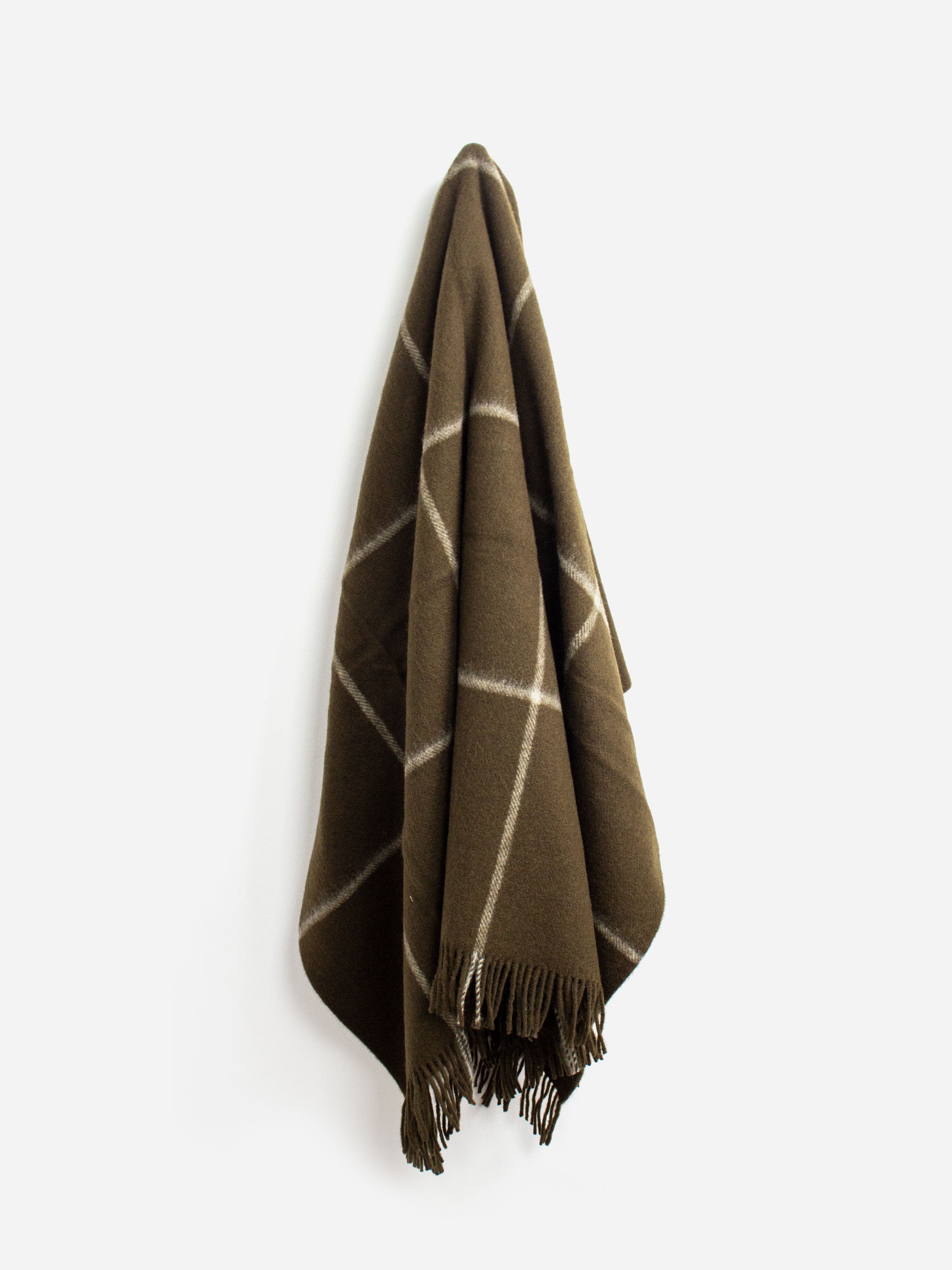 Simple, understated, and richly textured — the Ranfurly Kelp Throw is made from 100% wool and features a classic check design inspired by the rural Maniototo region. In a deep forest green with soft white stripes, this thick and toasty throw blends seamlessly into both contemporary and classic interiors. Generously sized at 140cm x 240cm, it's ideal for the foot of a king-size bed or draped in your living space. Dry clean recommended. Store indoors to maintain its quality.